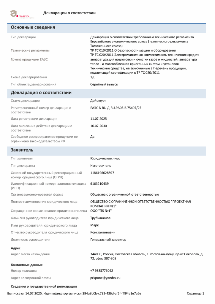 «Проектная компания №1» является специализированной инжиринговой компанией,